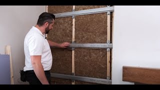Wall soundproofing system. A slim, high performing soundproofing solution, designed to pass Part E Building Regulations in domestic and commercial buildings.